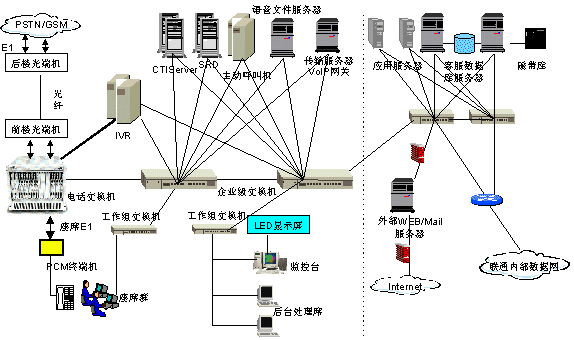 系統(tǒng)提供話務(wù)功能(例如:三方通話)、質(zhì)檢管理功能(例如:全程全席錄音)、系統(tǒng)管理功能(系統(tǒng)可視化配置、業(yè)務(wù)數(shù)據(jù)維護(hù))、系統(tǒng)監(jiān)控功能(例如:大屏幕聲光報警)、流程監(jiān)控功能(例如:對投訴處理監(jiān)控)、基本業(yè)務(wù)功能(業(yè)務(wù)咨詢、業(yè)務(wù)受理、話費(fèi)查詢、投訴建議、分銷商服務(wù)、大客戶服務(wù)、緊急服務(wù)等)、報表統(tǒng)計(jì)與信息查詢分析功能和增值業(yè)務(wù)功能(例如:新業(yè)務(wù)宣傳)等等。