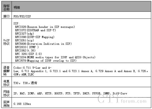 - 傳真支持:T30、T38和透傳;