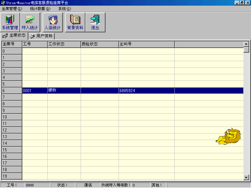 。。座席應(yīng)答時,在當(dāng)前座席座席端上顯示系統(tǒng)分配的客戶隊列和在線的客戶信息。同時,通過客戶管理功能,還可以對系統(tǒng)存儲的客戶信息進行維護和管理。