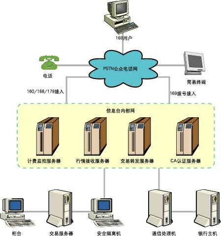 4.計(jì)費(fèi)監(jiān)控服務(wù)器:對(duì)股民電話委托的特定信息服務(wù)進(jìn)行計(jì)費(fèi)管理。