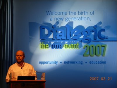 大會(huì)首先由Dialogic公司的全球資深副總裁 James Besley致辭!拔覀兓貋砹!”,James一句意味深長的開場白引來了全場長時(shí)間的熱烈鼓掌。是的,曾幾何時(shí),Dialogic在全球CTI領(lǐng)域是何等的輝煌,上個(gè)世紀(jì)九十年代他們?nèi)〉眠^驕人的業(yè)績,占據(jù)了全球市場的絕大部分份額,稱之為當(dāng)時(shí)CTI行業(yè)的先驅(qū)和領(lǐng)導(dǎo)者實(shí)不為過。
