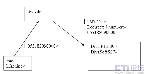 Dialogic Diva SS7傳真解決方案簡介:以往的傳真運(yùn)營在處理接收傳真的時候都是通過提供一個接入平臺號(例如山東網(wǎng)通的商務(wù)新動力為9600155),然后通過語音提示輸入傳真信箱號。這樣做的缺點(diǎn)在于對于所有的客戶來說接入號碼都是統(tǒng)一的,不能滿足個性化需求。有一些客戶不想失去原有的傳真機(jī)號碼。希望網(wǎng)絡(luò)傳真系統(tǒng)能夠綁定他們原來的傳真?zhèn)髡鏅C(jī)號碼。例如某客戶原有的號碼是053182090000,通過號碼綁定,當(dāng)其他用戶向他發(fā)傳真的時候,撥打的號碼是053182090000,但是此呼叫會被呼轉(zhuǎn)到9600155。傳真平臺根據(jù)原始被叫號來接收傳真。原有的基于PRI的解決方案不能解決原始被叫號的傳送問題,所以必須借助SS7網(wǎng)絡(luò)才能實(shí)現(xiàn)?蛻魮艽053182090000,呼叫被呼轉(zhuǎn)到9600155.在Redirected
