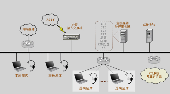 我們可以非常明確的一點(diǎn)是:采用分布式座席的技術(shù),使得遠(yuǎn)端座席與中心座席除了地域上的差異,其它部分完全相同?梢哉f只要網(wǎng)絡(luò)無極限,座席分布就是無極限的。