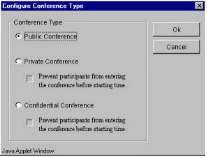 TeleConference系統(tǒng)內(nèi)的任一個(gè)分機(jī),都可以利用瀏覽器(Internet Browser)來預(yù)約會(huì)議時(shí)間,而參加會(huì)議的人可以在會(huì)議開始時(shí),自動(dòng)打電話進(jìn)系統(tǒng)參加會(huì)議就像加入“聊天室“一樣簡(jiǎn)單。
