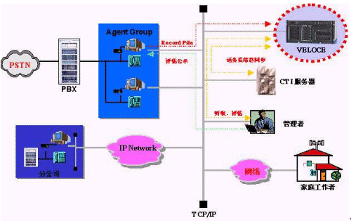現(xiàn)在國內(nèi)市場上的絕大部分錄音設(shè)備是基于語音板卡的,而VELOCE 是通過小巧的USB錄音模塊連接到話務(wù)員PC上,利用數(shù)字語音壓縮技術(shù)和加密技術(shù)把通話內(nèi)容存儲到話務(wù)員PC,