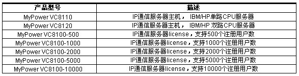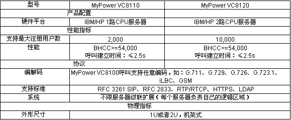 MyPower VC8100 IP通信服務(wù)器負(fù)責(zé)網(wǎng)關(guān)、IP電話機(jī)以及軟電話的注冊(cè)、號(hào)碼路由、增值業(yè)務(wù)提供等功能,基于MyPower VC8100的IP通信解決方案可以給用戶提供:IP語音通信、IP視頻通信、IP傳真通信;可以提供語音郵件、自動(dòng)總機(jī)、號(hào)碼攜帶、按名字呼叫、搜尋組等增值應(yīng)用;可以提供呼叫轉(zhuǎn)接、轉(zhuǎn)移、停泊、代答、保持等補(bǔ)充語音業(yè)務(wù)。