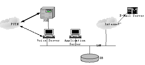 注: 本系統(tǒng)結(jié)構(gòu)靈活, TTS, Application Server 和語音識(shí)別引擎可以根據(jù)系統(tǒng)的大小分別分布在幾臺(tái)服務(wù)器上, 或者集中在一臺(tái)服務(wù)器上.