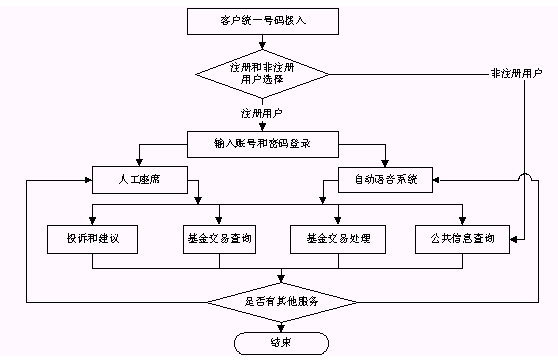 基金客戶服務(wù)呼叫中心系統(tǒng)的總體目標是建立一個統(tǒng)一面向投資者的多媒體呼叫中心平臺,通過統(tǒng)一的特服號接入,實現(xiàn)統(tǒng)一的用戶服務(wù)界面,統(tǒng)一的熱線功能和統(tǒng)一的基金業(yè)務(wù)標準,集中受理投資者對基金業(yè)務(wù)的需求,為投資者提供基金綜合性服務(wù)的無形窗口。系統(tǒng)以基金綜合業(yè)務(wù)系統(tǒng)為支撐,實現(xiàn)數(shù)據(jù)共享,完成業(yè)務(wù)咨詢、業(yè)務(wù)受理、業(yè)務(wù)查詢和客戶投訴等四大功能的一體化的處理與管理。