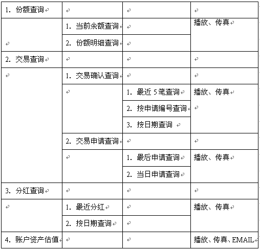 除了前文涉及到的受理投訴、建議、查詢申購地點等等關(guān)懷服務(wù)外,系統(tǒng)可提供以下關(guān)懷服務(wù):如何填寫開放式基金賬戶業(yè)務(wù)申請表、如何填寫開放式基金交易業(yè)務(wù)申請表、如何填寫開放式基金業(yè)務(wù)授權(quán)委托書等等。