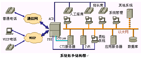 交換機實現(xiàn)電話呼入、呼出和話務(wù)管理等功能;提供自動排隊機系統(tǒng),用于實現(xiàn)對來話的均衡分配;呼叫管理系統(tǒng),用于有效管理所有話務(wù);支持IVR;提供CTI