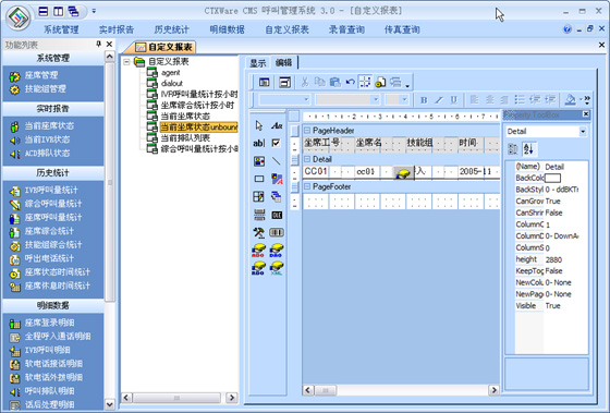 CMS是有效的對呼叫中心進(jìn)行監(jiān)視和管理的系統(tǒng)。它可以實(shí)時監(jiān)控整個呼叫中心的當(dāng)前數(shù)據(jù),按照座席、技能組、中繼線、隊列、路由進(jìn)行監(jiān)視,查看座席服務(wù)狀態(tài)及接通率各種指標(biāo),通過各項實(shí)時記錄和歷史記錄向用戶提供多種綜合分析報告和統(tǒng)計報告。其所生成的上百張報表,可以協(xié)助企業(yè)有效管理資源,檢查成本,預(yù)測改善現(xiàn)有運(yùn)作的潛在需求。并提供圖表顯示,生成Excel文檔進(jìn)行再編輯,或者通過標(biāo)準(zhǔn)的報表形式進(jìn)行編輯。支持自定義報表。
