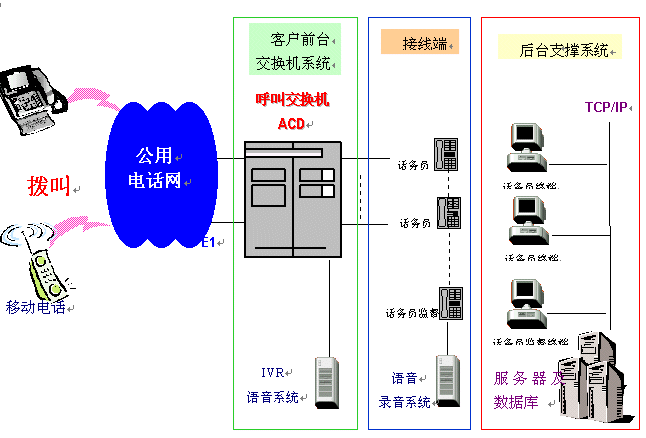 一個(gè)完整的呼叫中心解決方案通常由以下核心部分組成:自動(dòng)呼叫分配(ACD)、交互式語音應(yīng)答(IVR)、計(jì)算機(jī)電話綜合應(yīng)用(CTI)、錄音服務(wù)器、呼叫管理(CMS)等。