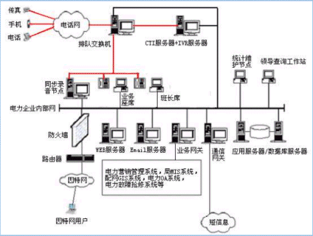 。。用戶利用電話、傳真、電子郵件、因特網(wǎng)、手機、網(wǎng)絡(luò)電話等撥打某一特服號碼(如95598)進入電力多媒體客戶服務(wù)中心系統(tǒng),本系統(tǒng)依托電力企業(yè)各類業(yè)務(wù)技術(shù)支持系統(tǒng),通過人工受理或自動語音服務(wù)等方式為各類客戶提供全天24小時不間斷的電力服務(wù);形成了對外服務(wù)于用戶的無形窗口,對內(nèi)管理、分析、決策系統(tǒng)相結(jié)合的新型客戶服務(wù)中心。