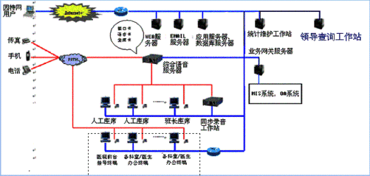 。。本系統(tǒng)提供基于計(jì)算機(jī)語音板卡和交換機(jī)兩種語音接入方式,都支持1號和7號信令線路的接入。對于20個(gè)以下座席的中小型醫(yī)院客戶服務(wù)中心系統(tǒng),則建議使用基于計(jì)算機(jī)語音板卡的形式,可以減少醫(yī)院投資,同時(shí)具有良好的系統(tǒng)性能;對于特大型的醫(yī)院客戶服務(wù)中心系統(tǒng),可選用交換機(jī)作為語音接入設(shè)備,保障系統(tǒng)的高可靠性和穩(wěn)定性。確保合理的、較少的投入,獲取最佳的配置,滿足不同醫(yī)院的需求。