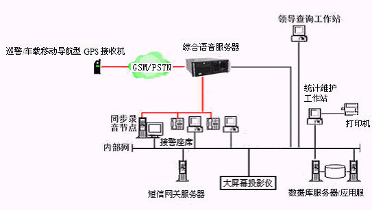 博宇科技110無線報警定位調(diào)度系統(tǒng)指揮調(diào)度中心的物理結(jié)構(gòu)由帶語音板卡的高性能工控機、CTI服務(wù)器、接警座席、統(tǒng)計維護管理工作站、數(shù)據(jù)庫服務(wù)器/應(yīng)用服務(wù)器、短消息網(wǎng)關(guān)服務(wù)器、同步數(shù)字錄音工作站、網(wǎng)絡(luò)系統(tǒng)和大屏幕投影儀等以及所開發(fā)的有關(guān)應(yīng)用軟件構(gòu)成。