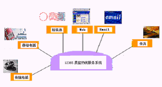 人民群眾利用電話、傳真、手機、電子郵件、因特網(wǎng)、短消息等撥打國家質(zhì)量技術(shù)監(jiān)督局規(guī)定的統(tǒng)一特服號碼(12365)進入12365質(zhì)監(jiān)熱線服務系統(tǒng),本系統(tǒng)依托質(zhì)量技術(shù)監(jiān)督局各類業(yè)務技術(shù)支持系統(tǒng)和網(wǎng)絡系統(tǒng),通過人工受理或自動語音服務等方式全天24小時不間斷地為客戶提供各種服務。