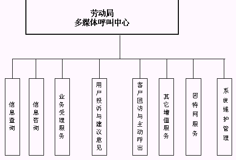 本系統(tǒng)具有自動(dòng)語(yǔ)音服務(wù)、人工坐席服務(wù)、信息咨詢(xún)、信息查詢(xún)、客戶(hù)投訴建議、客戶(hù)回訪與信息調(diào)查、因特網(wǎng)服務(wù)、管理人員對(duì)語(yǔ)音記錄的查詢(xún)等功能,并且結(jié)合圖形化的管理、監(jiān)控界面,使得客戶(hù)隨時(shí)隨地可以利用身邊的各種通訊工具獲得勞動(dòng)局的方便快捷的服務(wù)。