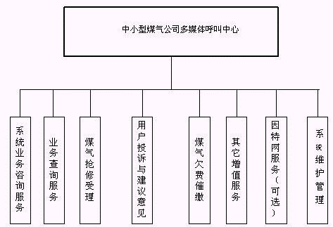 客戶利用電話、手機(jī)等撥打某一特服號(hào)碼(如9xxxx)進(jìn)入中小型煤氣公司多媒體呼叫中心系統(tǒng),本系統(tǒng)依托煤氣公司各類業(yè)務(wù)技術(shù)支持系統(tǒng)和網(wǎng)絡(luò)系統(tǒng),通過人工受理或自動(dòng)語音服務(wù)等方式全天24小時(shí)不間斷地為客戶提供各種服務(wù)。