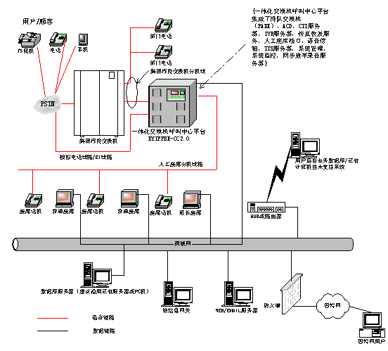 基于博宇科技一體化交換機(jī)呼叫中心平臺(tái)產(chǎn)品BYIPPBX-CC2.0的長安鈴木公司客戶服務(wù)中心系統(tǒng)網(wǎng)絡(luò)結(jié)構(gòu)
