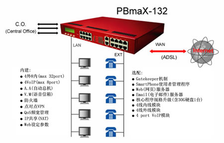 在21世紀的今日,隨著網(wǎng)絡(luò)應(yīng)用的普及,無論是個人或企業(yè)對于交換機的觀念若仍拘泥于傳統(tǒng)的思維,將是落伍的。免費網(wǎng)絡(luò)電話、分散式系統(tǒng),將是傳統(tǒng)交換機 在增加語音信箱/自動總機功能之后,系統(tǒng)機制的重大變革。本公司推出的PBmaX/PBmiX系列IP-PBX,不但將上述所有功能整合于一體,進一步可內(nèi)建公司VPN、Web服務(wù)器、GateKeeper等功能,呈現(xiàn)出數(shù)字交換機的全新風(fēng)貌,并將新的電話使用觀念帶進企業(yè)、SOHO辦公室與家庭內(nèi)。