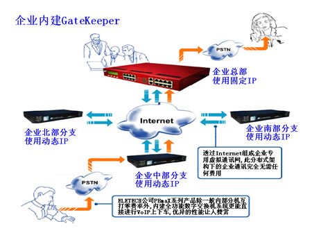 在Intranet環(huán)境下,多臺IP-PBX可以無縫的連接在一起協(xié)同工作,讓用戶充分享受分布式系統(tǒng)帶來的高效性與靈活性。