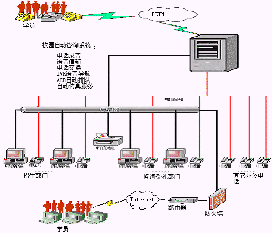 學(xué)員利用電話方式,可方便快捷的查詢近期開設(shè)的培訓(xùn)班課程內(nèi)容、開班時間、上課時間、上課地點、報名須知、費用情況等信息!∠到y(tǒng)還可預(yù)置相關(guān)介紹內(nèi)容的傳真件,供學(xué)員按需自助索取。