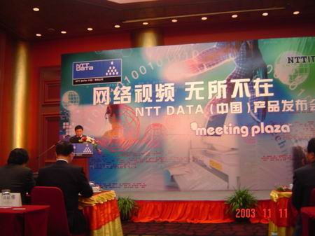 2003年11月11日,NTT DATA(中國)有限公司,在長城飯店舉行了名為“網(wǎng)絡(luò)視頻——無所不在”的產(chǎn)品發(fā)布會。會上,NTT DATA(中國)有限公司正式推出了一款網(wǎng)絡(luò)視頻軟件產(chǎn)品——“MeetingPlaza”。此產(chǎn)品開拓了視頻系統(tǒng)在圖像效果、控制靈活度以及性價(jià)比上的全新應(yīng)用模式。該產(chǎn)品的開發(fā)商N(yùn)TT-IT,自2001年6月起在日本開始系統(tǒng)的銷售及提供ASP服務(wù)。到現(xiàn)在已經(jīng)向500家以上的日本企業(yè)及地方政府提供了服務(wù),在日本深受好評。在中國,雖然軟件視頻會議系統(tǒng)還處在起步階段,但依據(jù)未來視頻通訊的廣大需求,以及“MeetingPlaza”具有的投入成本低、限制少和適用性強(qiáng)的特點(diǎn),都將使該產(chǎn)品更加具有市場潛力。