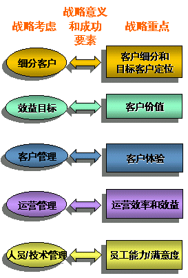 客戶(hù)關(guān)系管理戰(zhàn)略一般由以下5個(gè)部分的戰(zhàn)略考慮和相關(guān)的戰(zhàn)略重點(diǎn)構(gòu)成: