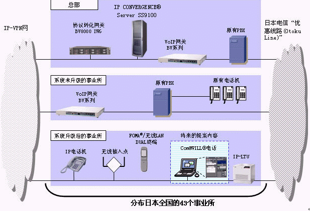 采用企業(yè)內(nèi)部IP Centrex系統(tǒng)連接其在日本的43個事務所,一年可減少1億日元成本
