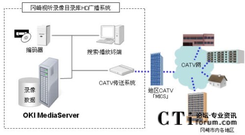 該系統(tǒng)以IP視頻傳輸系統(tǒng)“OKI MediaServer”為基礎(chǔ),是采用支持HD編碼裝置的錄像目錄庫(kù)系統(tǒng)。通過(guò)簡(jiǎn)單的GUI操作可以把編制成目錄的圖像制作成電視廣播節(jié)目并通過(guò)CATV電視臺(tái)播放。