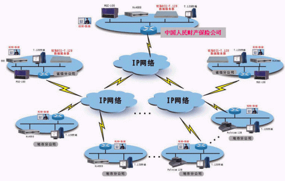 中國人民財產(chǎn)保險股份有限公司,是中國內(nèi)地最大的非壽險公司,香港證交所上市公司。經(jīng)過50多年的發(fā)展,中國人保財險公司已經(jīng)發(fā)展成為網(wǎng)點遍布全國31個省市區(qū),共有營業(yè)機構(gòu)4000余個的大型商業(yè)公司。為提高辦公效率,降低差旅成本,中國人保財險公司決定建設覆蓋從總公司、省分公司到地市分公司的視頻會議系統(tǒng),項目總?cè)萘窟_600多個節(jié)點,采用兩級級連方式組網(wǎng),要求系統(tǒng)具備視頻、音頻、數(shù)據(jù)交互功能,。