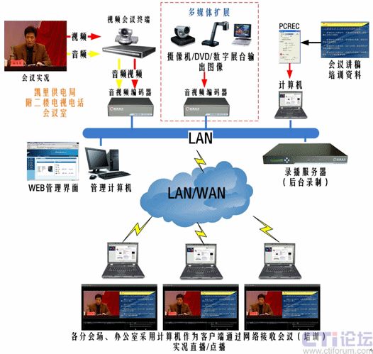 在過去的遠程培訓中,我們可能只能遠程接收到講師的圖像及聲音,不能看到講師計算機內培訓資料的內容,采用多媒體錄播服務器,可通過網絡同時收看講師圖像、聲音以及計算機中屏幕上顯示的所有培訓資料。