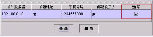 ·修改監(jiān)控郵箱配置時,首先點擊'選取'項中的小方框,選中該列然后雙擊要修改項的內容,修改完畢后按下Enter即回車鍵,再點擊修改按鈕