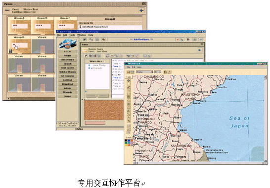 傳統(tǒng)的視頻會(huì)議廠商和其他WEB會(huì)議廠商都致力于開發(fā)新的網(wǎng)絡(luò)交互協(xié)作產(chǎn)品,如POLYCOM公司的WEB OFFICE,美國(guó)EZENIA公司的InfoWorkSpace和美國(guó)WebEx公司的Meeting Center都屬于此類產(chǎn)品。這類產(chǎn)品可以單獨(dú)使用,也可以和視頻會(huì)議系統(tǒng)結(jié)合,為用戶提供虛擬的協(xié)作辦公環(huán)境。系統(tǒng)功能強(qiáng)大,一般提供語音/文字交談,即時(shí)信息,公告牌,文本處理,白板,屏幕共享,文件庫(kù)管理,投票等功能,并具有完善的數(shù)據(jù)加密和身份識(shí)別能力,完全滿足一般部門和企業(yè)網(wǎng)上協(xié)作辦公、培訓(xùn)的需要。