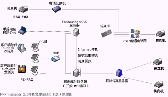 FAXmanager 2.5傳真管理系統(tǒng)安裝在局域網(wǎng)的一臺專用服務(wù)器上,運(yùn)行環(huán)境可以是:Windows98/NT/2000/XP等,此服務(wù)器可以同郵件服務(wù)器為同一臺機(jī)器,構(gòu)成企業(yè)郵件/傳真專用服務(wù)器,F(xiàn)AXmanager 2.5可以和企業(yè)郵件系統(tǒng)或群件系統(tǒng)整合使用,可以是Unix/Linux環(huán)境的Qmail和Sendmail等郵件系統(tǒng),也可以是Microsoft Exchange和Lotus Domino/Notes等群件系統(tǒng),當(dāng)然也可以是IComMail等企業(yè)郵件系統(tǒng),也支持虛擬主機(jī)設(shè)置企業(yè)郵局開設(shè)POP3帳戶和上網(wǎng)代理服務(wù)器的使用環(huán)境。