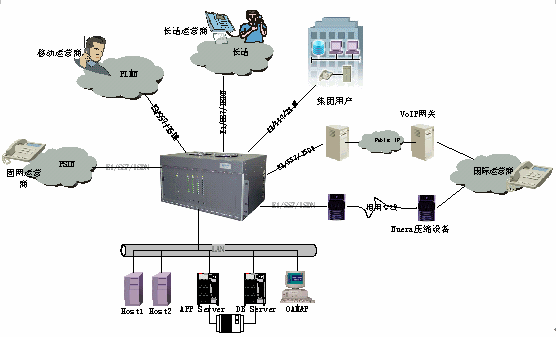 該系統(tǒng)是基于開放式可編程交換平臺,以開放式、模塊化的設(shè)計(jì)思想,采用業(yè)界最先進(jìn)的開放式可編程交換技術(shù)、信令網(wǎng)關(guān)技術(shù)、媒體網(wǎng)關(guān)技術(shù)、IVR技術(shù)和網(wǎng)絡(luò)技術(shù),專門為電信運(yùn)營商設(shè)計(jì)的能無縫融合多種網(wǎng)絡(luò)、在同一平臺上靈活提供多種電信增值業(yè)務(wù)的運(yùn)營級綜合業(yè)務(wù)平臺系統(tǒng)。它融入了眾多電信業(yè)務(wù)轉(zhuǎn)售商、IP電話運(yùn)營商、虛擬電信運(yùn)營商和增值電信服務(wù)商的實(shí)際運(yùn)營經(jīng)驗(yàn),以強(qiáng)大的功能和實(shí)用性幫助新興的中、小型電信運(yùn)營商快速進(jìn)入國際、國內(nèi)長途電話話務(wù)轉(zhuǎn)售、預(yù)付費(fèi)電話卡、后付費(fèi)電話、自動呼叫轉(zhuǎn)移等市場,提高效率并獲取最大的收益和回報。
