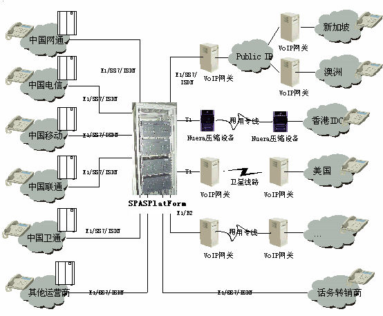 深圳斯普瑞特公司在積累多年電信業(yè)務(wù)應(yīng)用產(chǎn)品開發(fā)的基礎(chǔ)上,根據(jù)新興運(yùn)營商的特點(diǎn)專門構(gòu)造了一個電信運(yùn)營綜合業(yè)務(wù)平臺(SPASPlatForm平臺)。該業(yè)務(wù)平臺采用世界上最先進(jìn)的開放式的設(shè)計(jì)思路,既可配合各類型的板卡和傳統(tǒng)交換使用,又可配合先進(jìn)的開放式可編程交換平臺使用,還可適應(yīng)下一代網(wǎng)絡(luò)(如:軟交換)。該業(yè)務(wù)平臺軟件采用模塊化設(shè)計(jì),可根據(jù)用戶的需要在同一平臺上實(shí)現(xiàn)多種業(yè)務(wù),包括:話務(wù)轉(zhuǎn)售;預(yù)付費(fèi)電話卡;后付費(fèi)電話;電話呼叫跟隨轉(zhuǎn)移;會議電話等,還可根據(jù)需要生成其他新的業(yè)務(wù)。