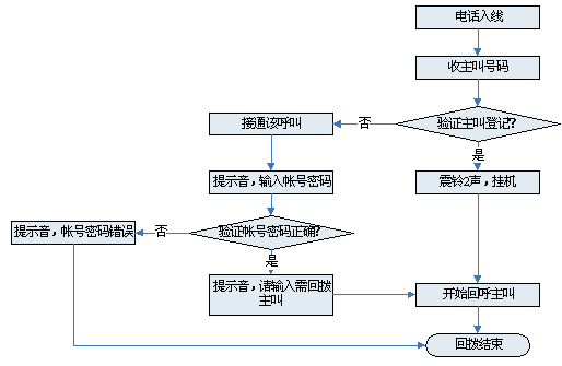 對接入系統(tǒng)的電話均進(jìn)行主叫識(shí)別,如果主叫沒有注冊,系統(tǒng)語音提示后,主動(dòng)釋放電話 |