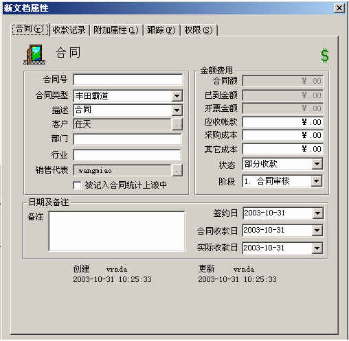 合同基本管理:創(chuàng)建合同、查詢(xún)合同(包括查詢(xún)銷(xiāo)售業(yè)務(wù)人員自己的合同和查詢(xún)所有合同)