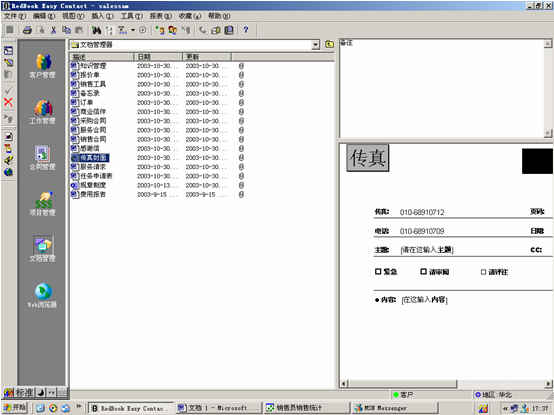 文檔管理模塊主要是將公司內(nèi)部應(yīng)用的公共文檔進(jìn)行統(tǒng)一管理。比如:各類(lèi)合同模板、銷(xiāo)售工具、報(bào)價(jià)單、訂單、規(guī)章制度、知識(shí)管理、任務(wù)申領(lǐng)單、傳真封面等。(如下圖)