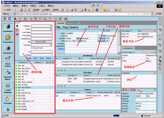 融博公司適應(yīng)市場需求,與著名的獵頭公司一起合作,結(jié)合CRM的理念和現(xiàn)有的軟件平臺,開發(fā)出了融博獵頭業(yè)務(wù)管理系統(tǒng)。該系統(tǒng)具有自己獨(dú)特的優(yōu)勢,比如擁有中英文兩種版本;使用WEB方式、具有跨地域信息共享;人力資源信息專業(yè)規(guī)范、覆蓋全面;系統(tǒng)操作簡單、功能強(qiáng)大;配置靈活、可擴(kuò)展性強(qiáng);復(fù)雜的業(yè)務(wù)關(guān)聯(lián)性;以及生成各種業(yè)務(wù)報(bào)告和業(yè)務(wù)報(bào)表等。該系統(tǒng)采用了模塊化的設(shè)計(jì)方案,可以根據(jù)用戶的使用權(quán)限和業(yè)務(wù)內(nèi)容,配置不同的業(yè)務(wù)模塊。該系統(tǒng)的功能模塊包括了候選人管理、客戶管理、雇員管理、定單管理、活動管理、績效管理、系統(tǒng)管理和報(bào)表管理等。