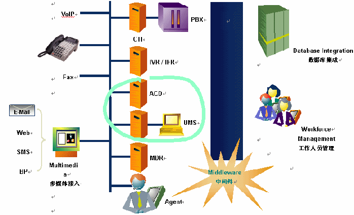 ·采用CSTA接口和外置式ACD自動呼叫分配引擎,整個平臺是硬件無關的,可以支持目前主流的PBX和語音板卡。