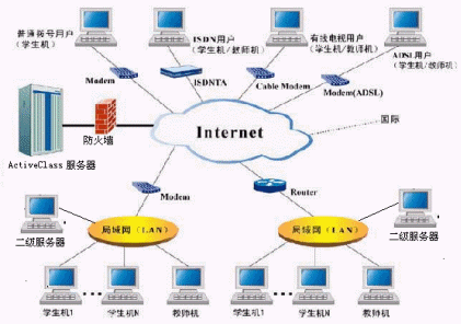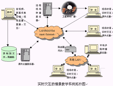 遠(yuǎn)程教育系統(tǒng)它是學(xué)校的教室課堂在互聯(lián)網(wǎng)上的延伸,突破了教室空間的概念,它把任何區(qū)域的教師和學(xué)生緊密聯(lián)結(jié)在一起。