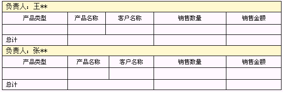 作為分公司銷售經(jīng)理,需要查看分公司每個(gè)銷售員的銷量統(tǒng)計(jì),便于向銷售總監(jiān)做好匯報(bào),需要同時(shí)知道不同產(chǎn)品類型的銷量?梢酝ㄟ^分組報(bào)表來實(shí)現(xiàn),如下圖: