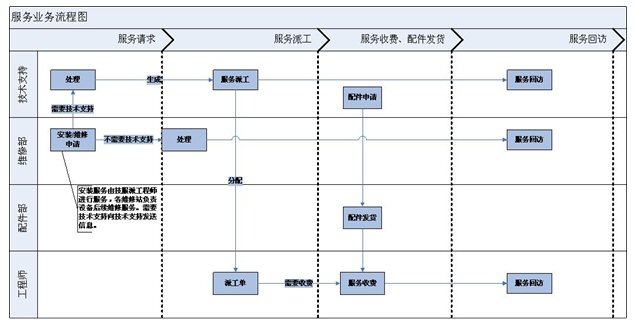 維修的流程通過電話受理,紙張記錄,傳真分配等過程,導致信息流轉丟失、誤傳等一系列漏洞,可是在出現狀況時,卻無法明確責任。