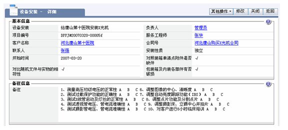 對于需要安裝的項目記錄,包括項目的安裝團隊、日程安排、安裝費用、安裝文件、安裝階段等的管理