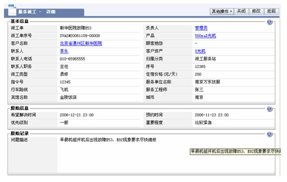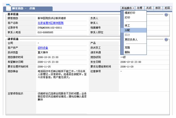 醫(yī)療設備的維修以現場服務為主,在接到客戶服務請求到派工的流程,依靠紙張遠遠達不到高效的要求,維修情況的記錄已僅僅是事后的文字記錄,通常需要層層上報,更不具備匯總和統(tǒng)計分析的功能,作為領導不能適時監(jiān)控和管理在外的維修服務工程師。