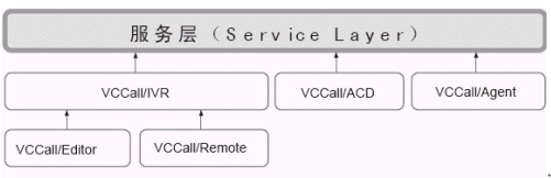 FU-YA VCCall服務(wù)層(Service Layer)是構(gòu)成整個(gè)富雅呼叫中心生成系統(tǒng)VCCALL System 的核心。它包括三個(gè)功能模塊(見下圖):VCCall/IVR交互式語音應(yīng)答系統(tǒng)、VCCall/ACD智能呼叫排隊(duì)系統(tǒng)、VCCall/Agent座席應(yīng)用程序。以下就各功能模塊及其相應(yīng)組件展開詳細(xì)介紹。