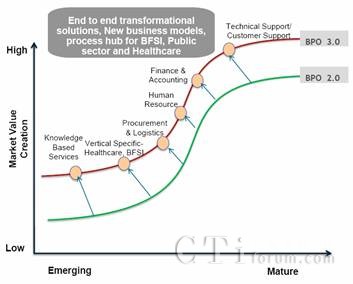 非語(yǔ)音業(yè)務(wù)所占比率的快速上升,這只是業(yè)務(wù)模式從以單個(gè)項(xiàng)目為基本單位發(fā)展到全方位客戶關(guān)系在技術(shù)層面的表現(xiàn)之一。承接呼叫中心非語(yǔ)音業(yè)務(wù)的能力,已經(jīng)成為BPO提供商進(jìn)入中高端業(yè)務(wù)領(lǐng)域的標(biāo)志。實(shí)際上,由于業(yè)務(wù)模式的提升,對(duì)技術(shù)提升的要求絕不僅僅是非語(yǔ)音業(yè)務(wù),而是是全方位的。其中,最重要的特征就是與金融服務(wù)、電信和醫(yī)療保健等重點(diǎn)行業(yè)的緊密結(jié)合,提供有行業(yè)特色的解決方案,向業(yè)務(wù)價(jià)值鏈的上游轉(zhuǎn)移,同時(shí)跨越整個(gè)價(jià)值鏈提供業(yè)務(wù)流程再造。這種業(yè)務(wù)能力的提升,就是從BPO 2.0向BPO 3.0的提升。