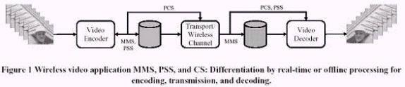 雖然新的服務(wù)如多媒體廣播/組播服務(wù)(MBMS)是未來(lái)無(wú)線網(wǎng)絡(luò)的發(fā)展計(jì)劃,但我們被約束成單一的應(yīng)用程序接受者。移動(dòng)手持設(shè)備受處理器速度和存儲(chǔ)容量的限制,因此,移動(dòng)視頻編碼的設(shè)計(jì)必須以最低復(fù)雜度和最高效率為目標(biāo)。正如其它文章所討論的復(fù)雜問(wèn)題一樣,我們將自己約束在傳輸和工具上。以上三點(diǎn)定義的應(yīng)用可以在預(yù)定的的傳輸帶寬里面,最大限度地允許端到端的時(shí)延,在不同的系統(tǒng)結(jié)構(gòu)有不同的結(jié)果,一個(gè)簡(jiǎn)單的圖示如圖一。